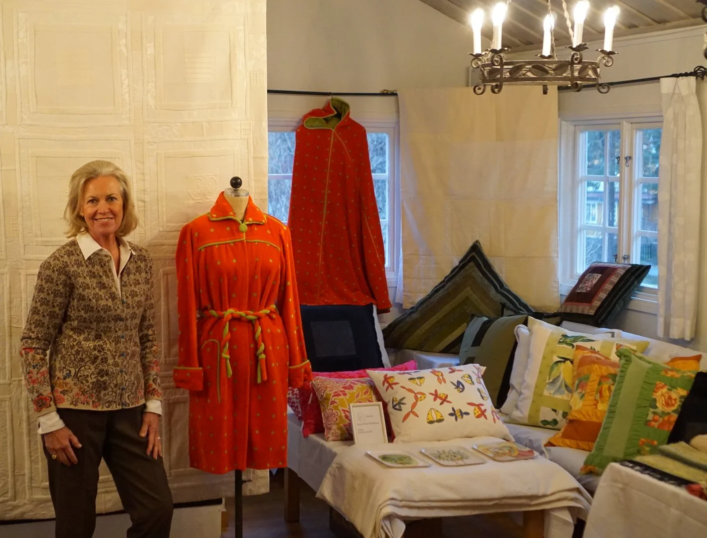 Världen kändes färglös, men längtan tog över. Jag beslöt att söka efter det inre ljuset, livsgnistan jag mindes från mitt spännande Romliv. Skrev och målade och så småningom kom skaparlusten och glädjen åter. Kreativiteten gick vidare från måleri till fri konstsömnad: kuddar och täcken i lappteknik, bårlöpare till min fars begravning och väggbonader. Jag hittade hem igen, till mitt inre glada rum. Såväl sömnaden som måleriet och mina texter växer fram organiskt, allteftersom jag syr, målar eller skriver.