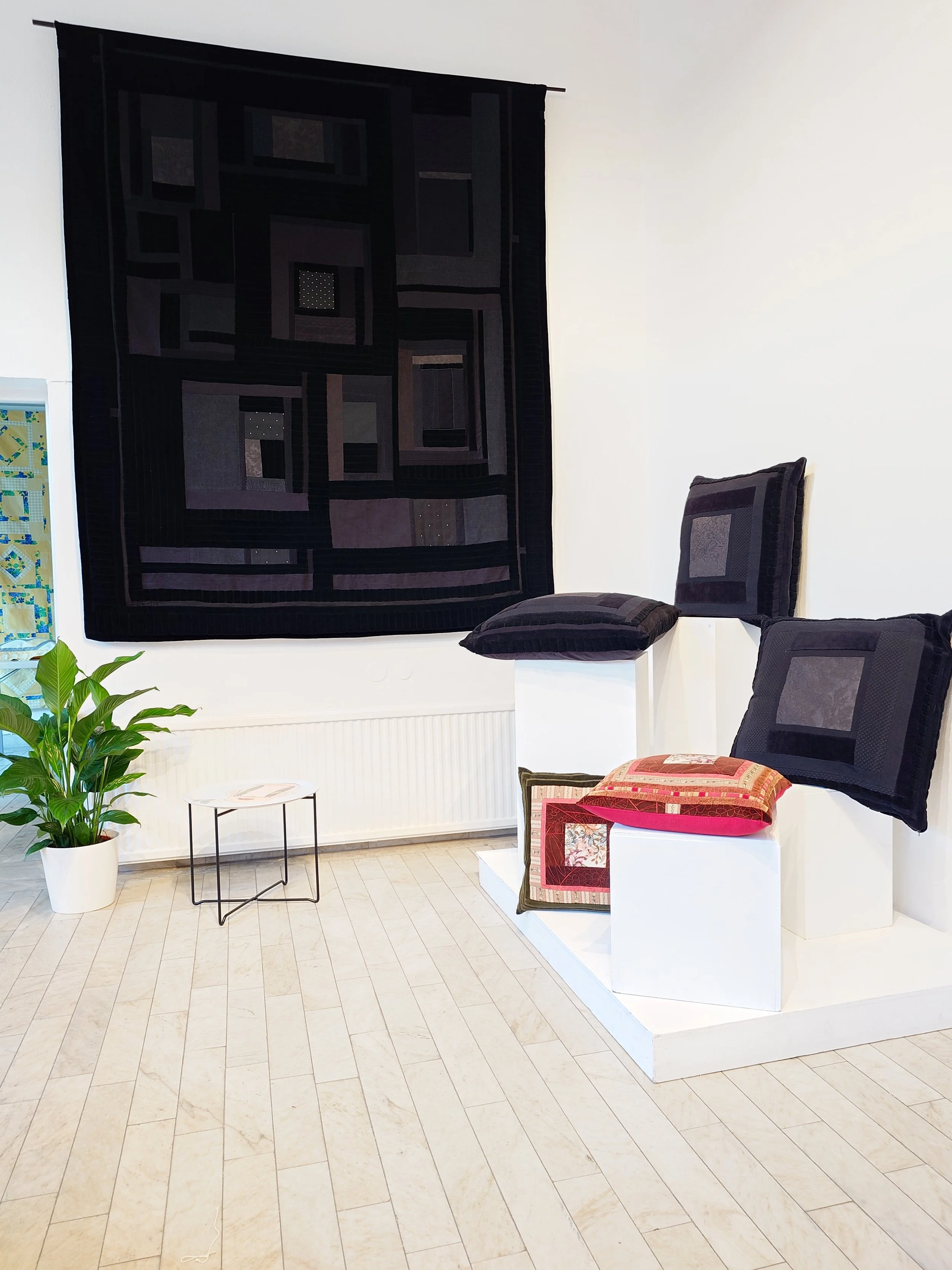 Mitt textila arbete inleds ofta med en upptäckarlust: en färgskala eller ett tyg med någonting som stimulerar min fantasi. Därifrån växer verket fram steg för steg. Jag väljer, kompletterar, färgar in, syr, sprättar upp och börjar om, tills något faller på plats och en egen harmoni uppstår.