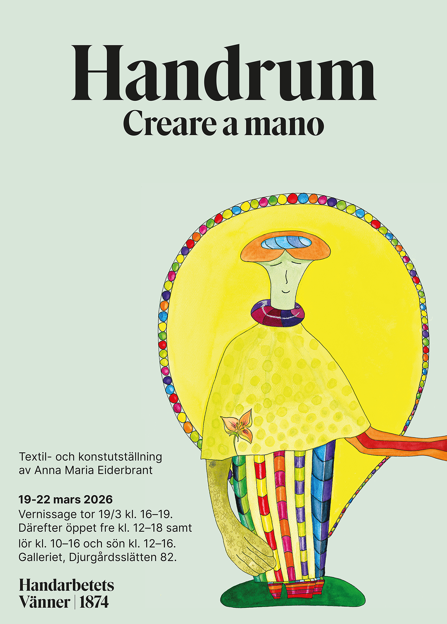 Textil- och konstutställning av Anna Maria EiderbrantHandarbetets Vänner 19-22 mars 2026 Länk till evenemangssidan HANDRUM - Utställningstext Se i full storlek Vår Livsväv - Boo Församling - 2020
